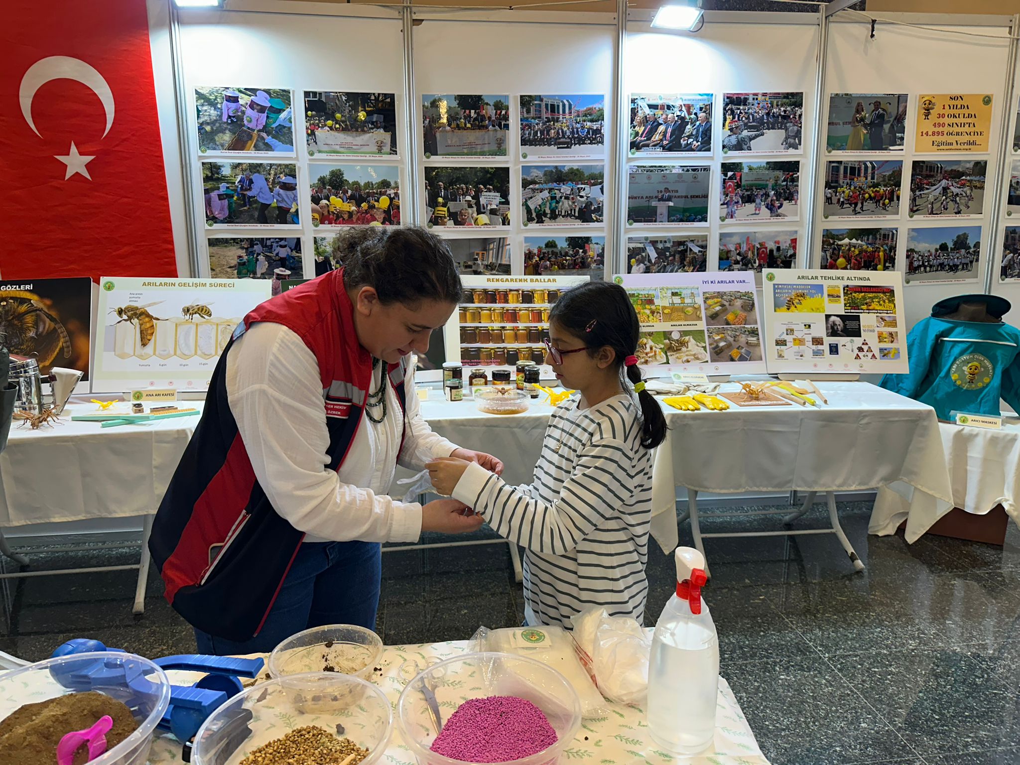 Fuar alanında açtığımız stantta, özellikle çocuklar ve vatandaşlara arıların doğadaki rolü ve arıcılığın önemi hakkında bilgilendir yaptık.