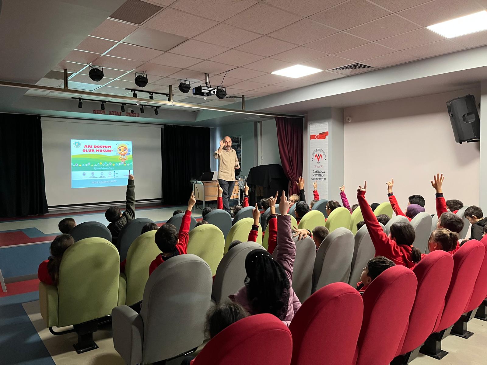 Arı Dostum Olur Musun? Eğitim ve Farkındalık Projesi kapsamında Çayırova Metehan Ortaokulu’na misafir olduk. 11 Aralık 2025 günü konferans salonunda ve sergi alanında verilen eğitimler ile farkındalık oluşturmaya devam ediyoruz.